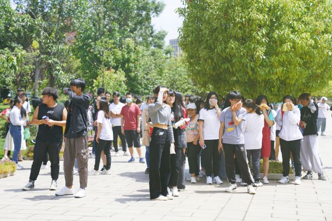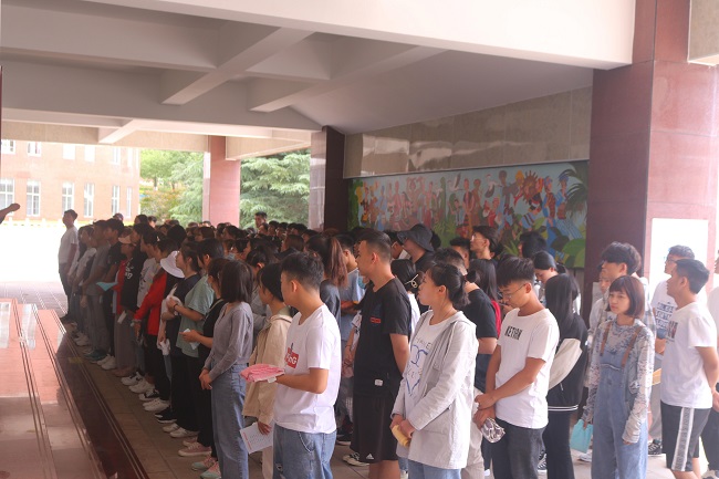 到达指定避难场所后,保卫处及学生中心的老师清点人数,并逐级进行汇报。所有师生全部到达指定临时避难场,用时2分47秒,符合火警险情时安全疏散的相关时间要求。