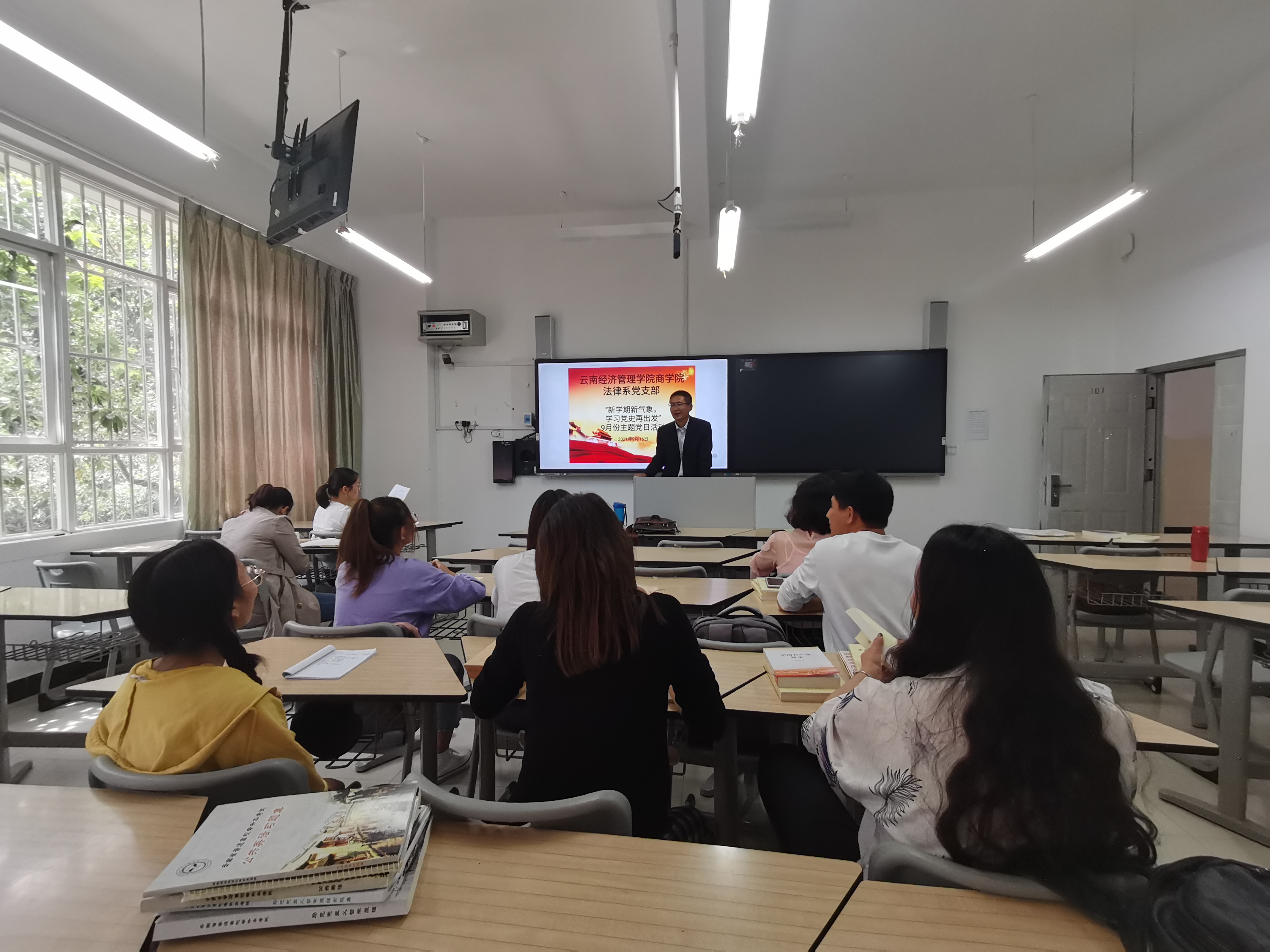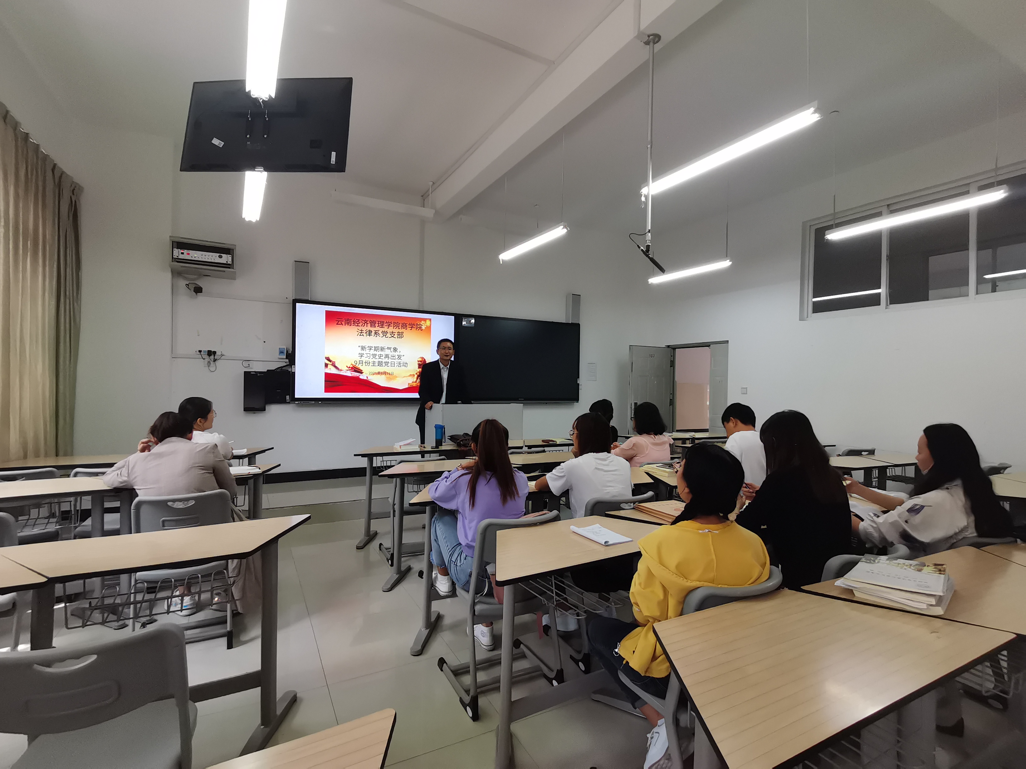为增强支部活力,提升党员意识。于2021年9月16日12时20分在一教106教室商学院法律系党支部组织了主题为“新学期新气象,学习党史再出发 ”的主题党日活动。张杰老师作为活动主讲人,参加活动的还有法律系党支部全体党员及预备党员同志们。