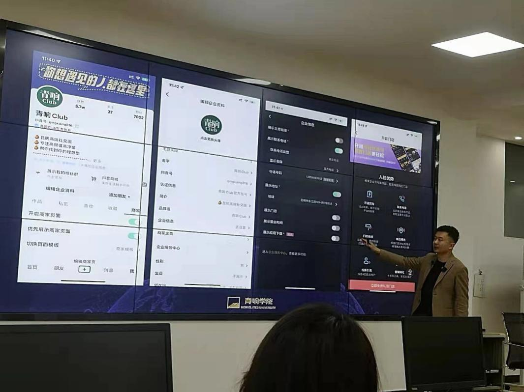 图六 刘夕野老师对青响本企业的抖音号进行解说