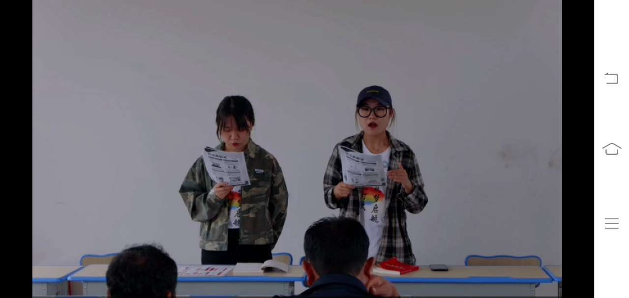 活动中同时开展国家资助政策宣讲活动,队员董登科和包融同学主讲,向大家讲解了国家的资助政策。从学前教育幼儿、普通高中教育学生、中等职业教育学生、研究生教育阶段、普通高等教育学生五个方面讲解。最后再根据我校实际情况,讲解我校的额外的资助政策,两位同学也用自身作为案例,更贴近实际地向大家讲解。