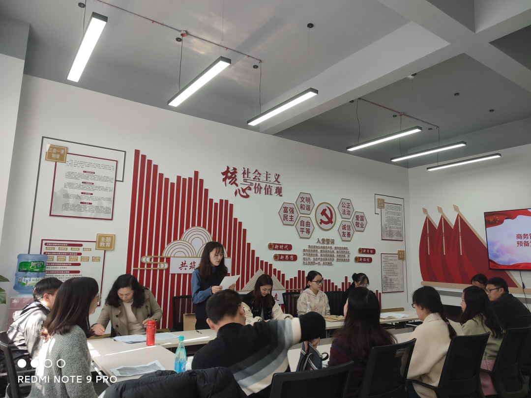 为党组织汇入新鲜血液,增强支部力量,商学院商务管理系党支部于2021年11月18日中午12:40在一教109召开接收预备党员支部大会,本次会议由支部书记龚顺强同志主持,商务管理系党支部全体党员、预备党员以及发展对象参加。
