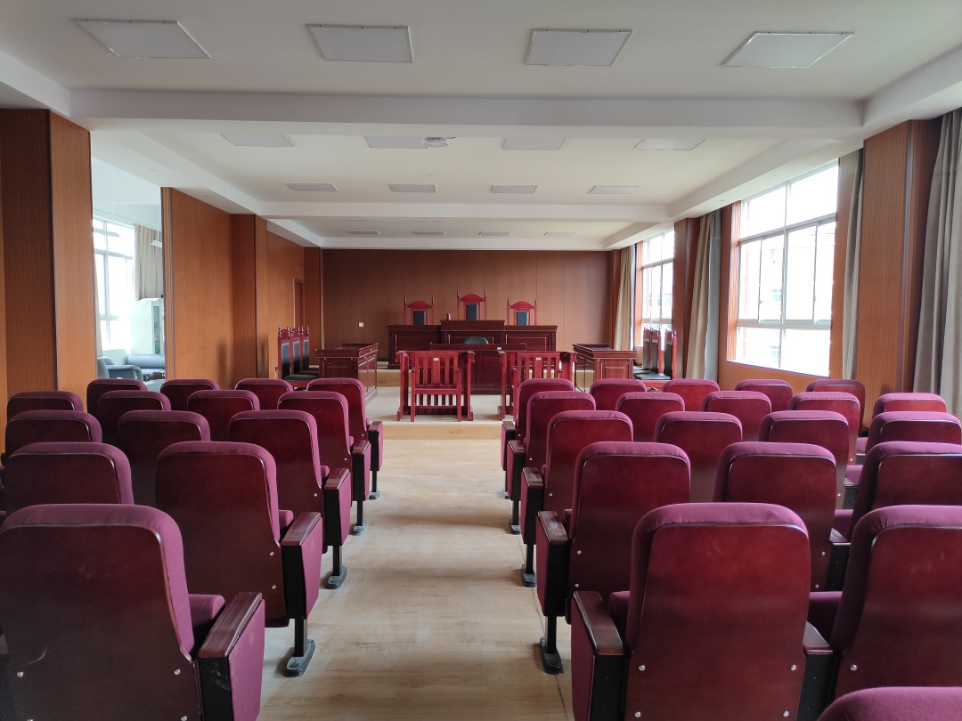 模拟法庭是按照人民法院审判庭布置的指导性意见进行建设,具有完整的实验教学功能和实验教学设备。承担了《模拟法庭》等课程的实验教学任务,主要开设以下实验项目:1.模拟刑事诉讼一审、二审审判程序;2.模拟民事诉讼一审、二审审判程序;3.模拟行政诉讼一审、二审审判程序。