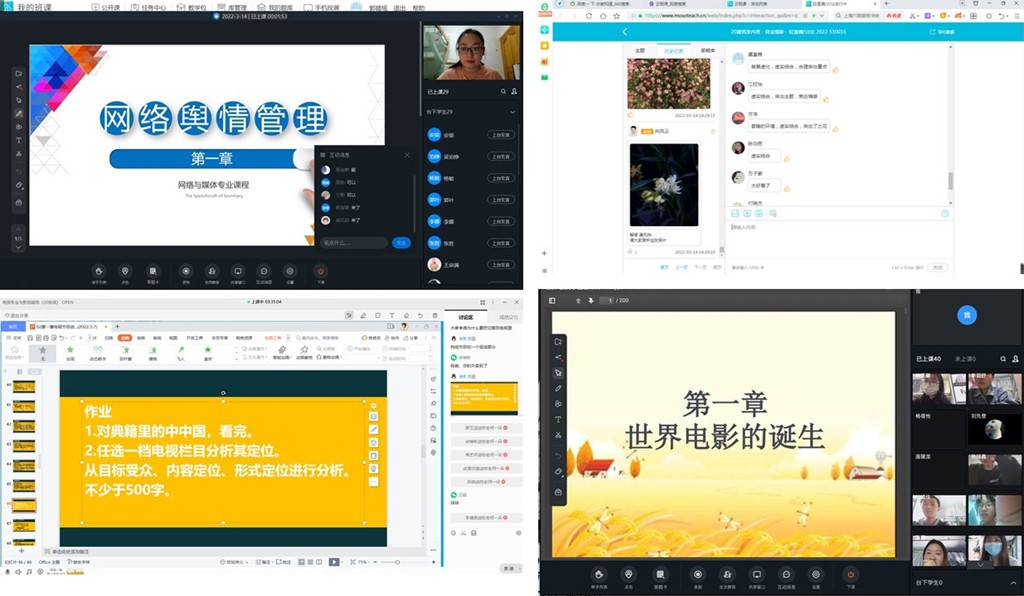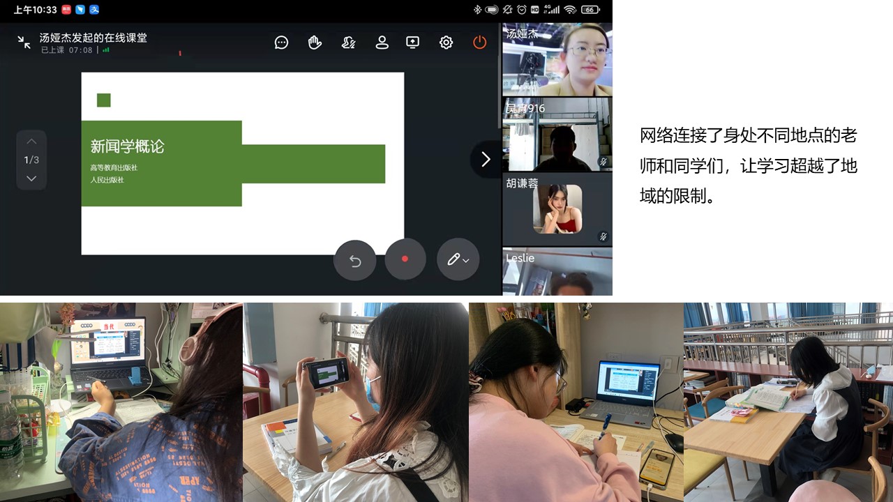 传媒系师生响应学校号召,利用多种网络平台在线继续开展教学活动。虽然不能到课堂相聚,但每天在老师的带领下,同学们仍然在不断提高自己的专业知识水平。